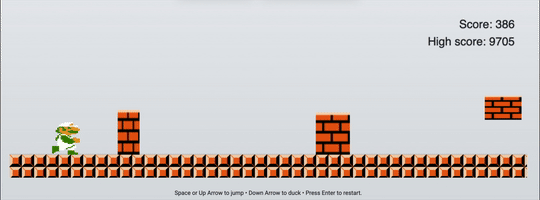 Create a game like the one in Google Chrome when you lose internet — the dinosaur game where you jump over obstacles and dodge flying ones by ducking.